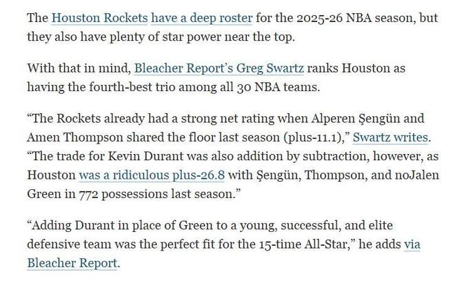新人換巨星,火箭隊(duì)重組3巨頭!美媒看好全新3人組:實(shí)力聯(lián)盟第4