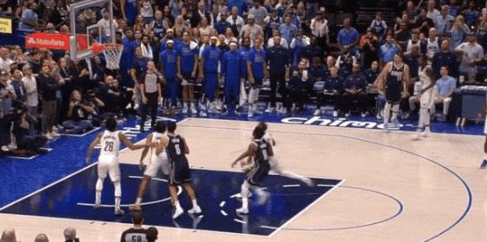像去年常規(guī)賽獨(dú)行俠與火箭的一場,東契奇三分線內(nèi)一步手一拋壓哨命中。