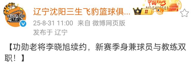 - 遼籃官宣功勛老將李曉旭續(xù)約:20年前CBA菜鳥賽季楊瀚森剛出生