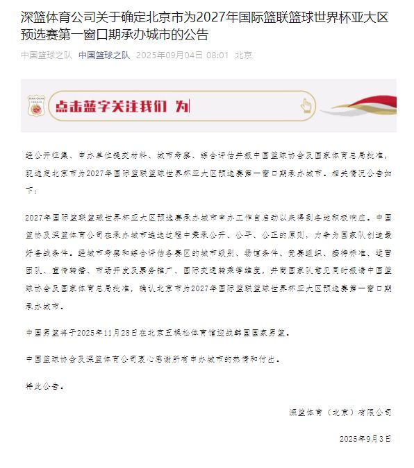 男籃世預賽第一窗口期在北京舉辦中國男籃11月28日迎戰(zhàn)韓國