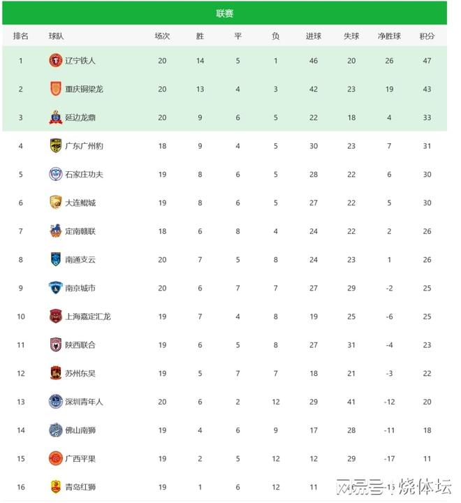 中甲積分榜:遼寧坐穩(wěn)榜首,重慶剎車恐怕來不及,或被抬進中超