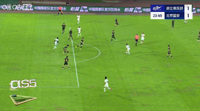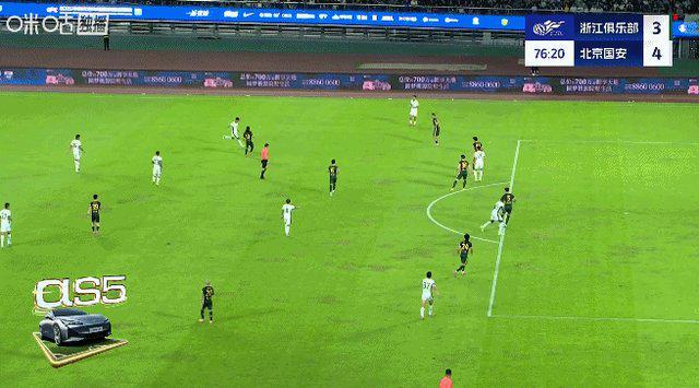 第74分鐘,王鈺棟一條龍殺入禁區(qū)單挑王剛后兜射被撲。第77分鐘,國(guó)安連續(xù)傳球,乃比江長(zhǎng)傳,法比奧頭球擺渡,王子銘門(mén)前推射入網(wǎng),裁判經(jīng)過(guò)查看之后確認(rèn)進(jìn)球有效,國(guó)安逆轉(zhuǎn)比分,浙江暫3比4國(guó)安。