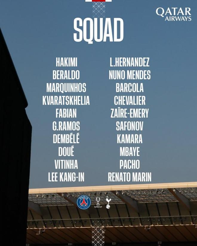 多納魯馬缺席!巴黎公布歐超杯vs熱刺大名單