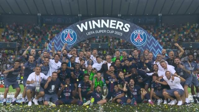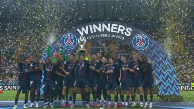 【捧杯時刻】巴黎隊史首奪歐超杯!馬爾基尼奧斯捧起冠軍獎杯