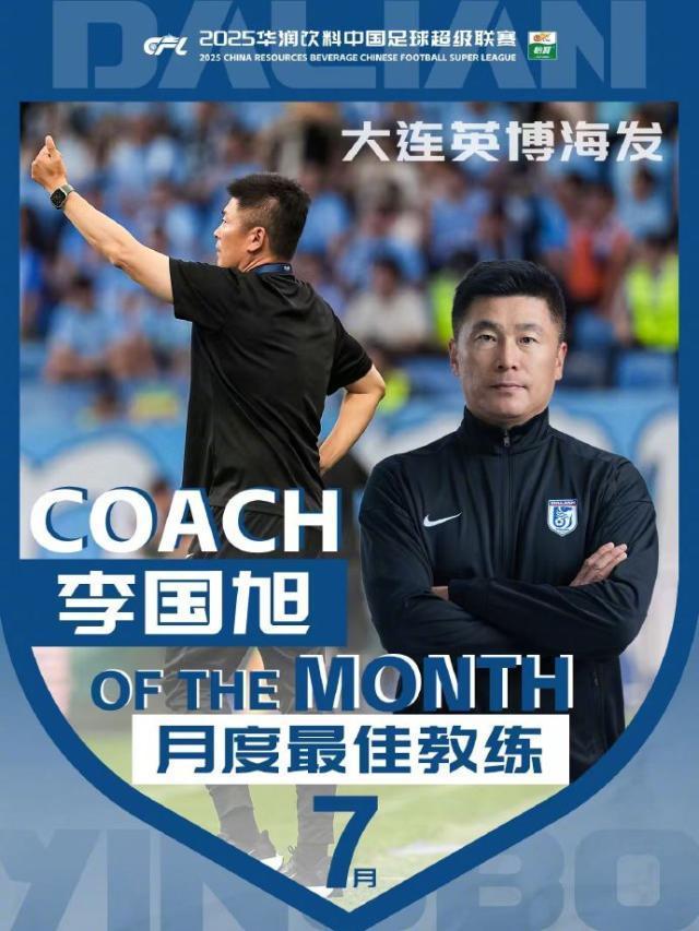 官方:大連英博主教練李國(guó)旭當(dāng)選中超7月最佳