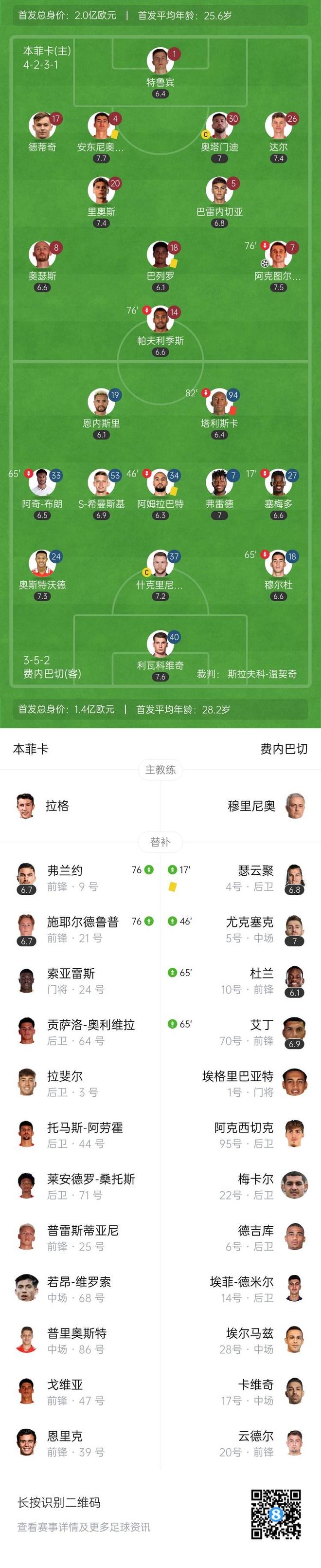 穆帥無緣歐冠!本菲卡10費內(nèi)巴切晉級正賽塔利斯卡兩分鐘吃兩黃