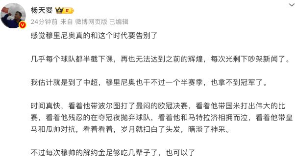 穆帥遭北京名記看衰:該退休了!來中超都拿不到冠軍挺不過1年半