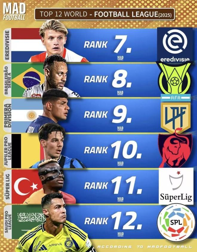 - 2025世界聯(lián)賽榜單引熱議:沙特聯(lián)賽躋身前12全靠C羅等球星硬撐