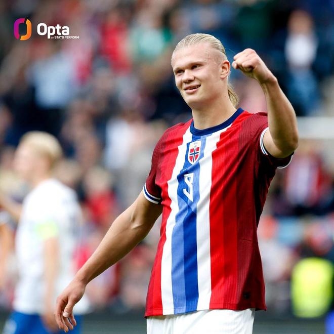 大四喜,哈蘭德是本世紀(jì)首位在挪威國(guó)家隊(duì)單場(chǎng)進(jìn)4球的球員